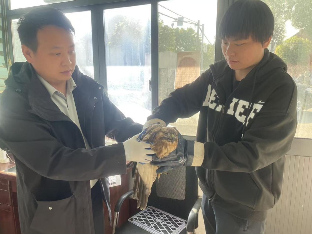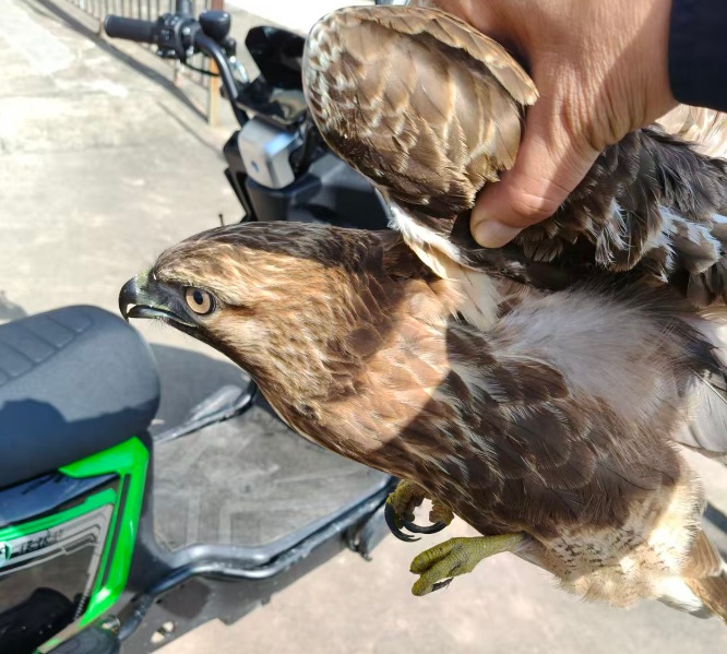 凭借日常积累的野保知识,大家初步判断其可能是国家保护动物,且状态不佳,无法飞行,应该是翅膀受伤了。
