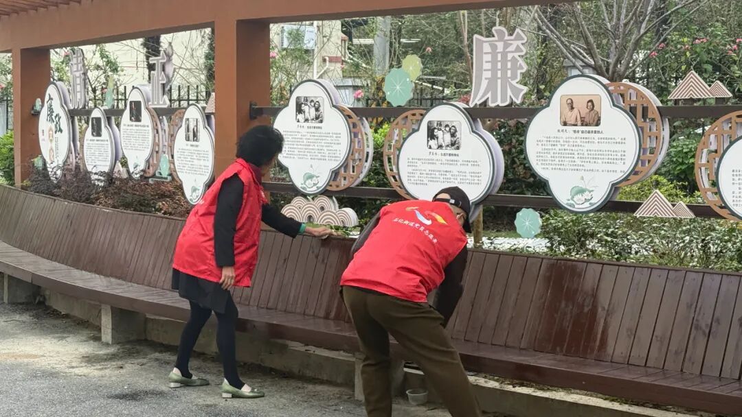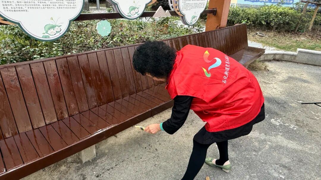 记者在石化四村看到,几名身穿红色志愿者马甲的居民手拿刷子,将褪色的木质长椅重新涂上桐油与清漆,一张张旧椅焕然一新。“现在大家没事的时候,就过来坐着聚聚,唠唠嗑。”居民王靖伟笑着说。
