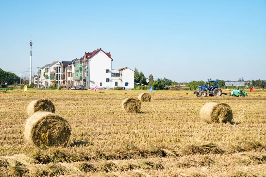 在金山区太平村的稻田里,与会人员观摩学习了水稻秸秆标准化还田和离田作业的全流程。各种型号的灭茬旋耕机、深翻机依次下田,展示了不同田块条件下秸秆还田的多样化作业方式。在离田收集作业现场,搂草机、打捆机、夹包机轮番作业,散落在田间的水稻秸秆经搂堆、压实、打捆,摇身一变成了一个个大小均匀的“瑞士卷”。安装在作业农机上的定位和图像采集装置,实时监测离田作业轨迹、打捆作业面积和数量等数据,以信息化手段提高秸秆综合利用监管效率。