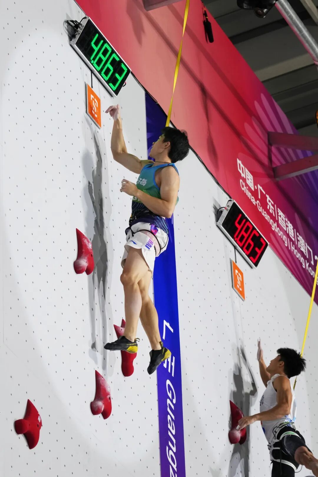 赵一程(左)在决赛中率先登顶