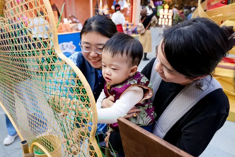 本次非遗季深度融合豫园在地文化,以竹编为韵、银杏寄情,由青年非遗艺术家联袂打造沉浸式“非遗风物展”。银杏叶视觉符号贯穿全程,象征非遗技艺在百年城厢中的青春绽放。中心广场特设公共互动区,邀请中外游客共同参与竹编创作,沉浸体验“非遗之韵”的独特意境。