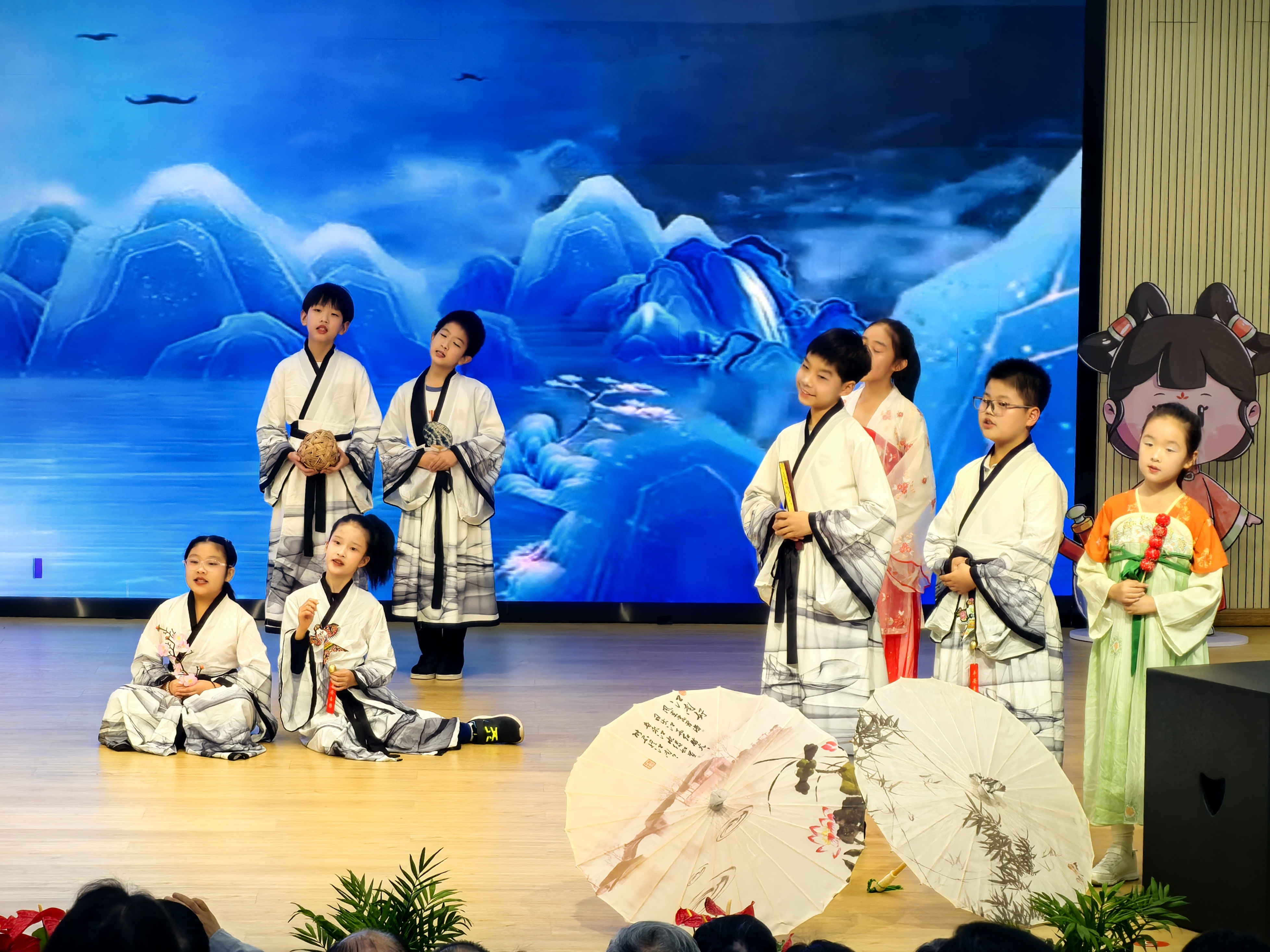 除了“校名我来写”外,“校园我来画”“校刊我来编”“校园诗歌我来创”“积分银行我来管”等系列活动也备受学生欢迎。更令人称道的是,不仅学生是校园生活的创造者与记录者,教师也各展其才,为教育教学注入了生命力。校长王本运介绍,学校每学期开设近80门涵盖科创、人文、生态等多领域的“启明”校本课程,并构建起了“启智、明理、乐活、笃行、致远”五大模块育人矩阵。这些课程都凝聚着教师的育人智慧和热情。由学校教师自主研发的《你好呀!古诗词》就是代表。这项校本课程选取了99首古诗词,按美食、四季、学习、生活、亲情、友谊等分类排布,不仅有学校的“Q版”阅读形象代言人带领孩子们畅游古诗词王国,还设计了“鲁小班”“飞飞”“达芬奇”“书伯虎”等11个“Q版”学科代言人。