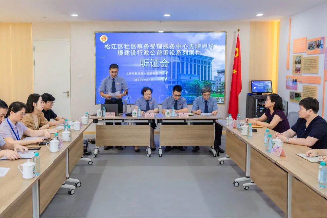 为深入践行全过程人民民主,切实回应人大代表关切,松江区检察院在代表建议+检察公益诉讼工作联系点就规范社区事务受理服务中心无障碍环境建设行政公益诉讼案召开听证会,邀请区人大代表、政协委员以及残障人士“益心为公”志愿者参加听证,相关行政机关负责人员参与听证。经公开听证,松江区检察院助力提升社区事务中心无障碍环境建设的做法与成效获一致肯定。