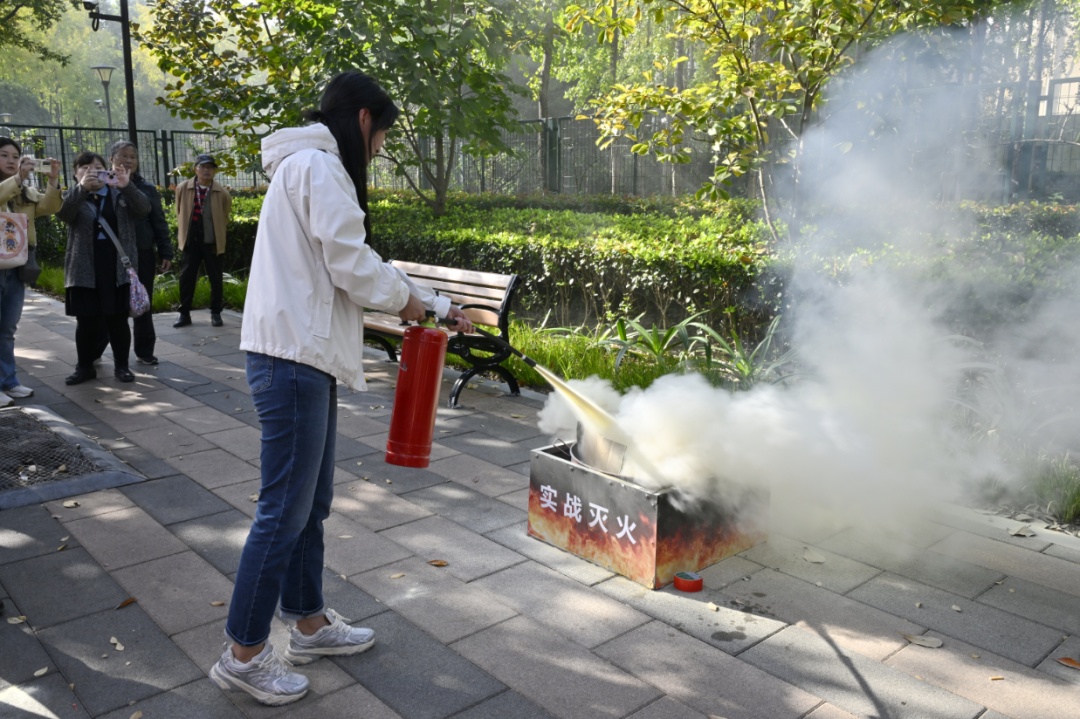 听着教官的现场指导,体验实战灭火的居民们拿起灭火器,顺利完成“提、拔、握、压”的灭火步骤,把灭火技能牢记在心。