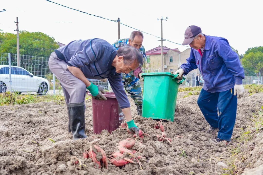 随着挖机的轰鸣声,一块块田地间,红艳艳、饱满硕大的红薯纷纷破土而出。工作人员正驾驶着三轮车,往来穿梭,将一箱箱刚采收的红薯转运集中。正在田间协助捡拾红薯的村工作人员姚龙华说道:“我们这些红薯从选种、育苗到田间管理,每一步都格外上心,村里还特意邀请了浙江农科院的老师来指导,就是想让老人们吃到最新鲜、最香甜的红薯。把丰收的滋味分享给他们,再累也值得。”
