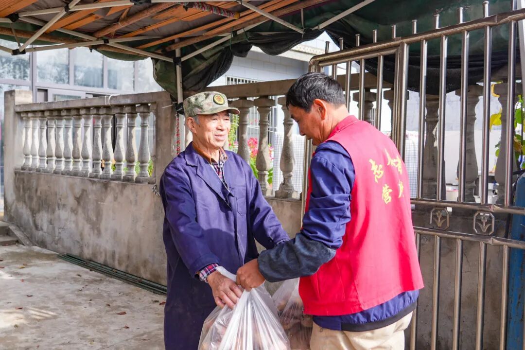 家住营房二组的沈长法领到红薯后,乐呵呵地说:“村里想着我们这些老人,种了这么好的红薯专门送给我们,心里太暖了。村里每年都会给我们送东西,我们太幸福了!”