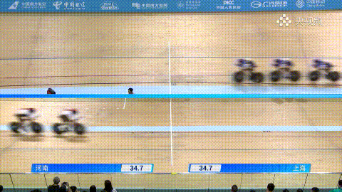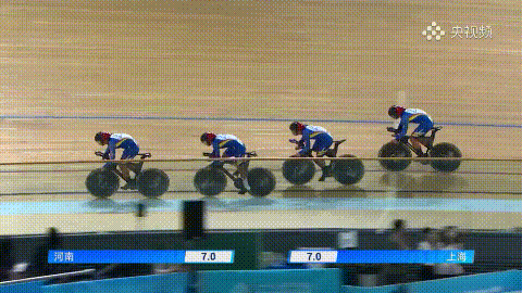 场地自行车团体追逐赛是一项分别由4名运动员组成的两支自行车队,从跑道两个直道相反方向出发,相互追逐、进行4公里距离的比赛。上海男队曾在今年7月举行的全国场地自行车锦标赛中,收获该项目亚军。此番来到全运赛场,小伙子们继续破风疾行、全速交锋,为上海市代表团收获一枚宝贵的银牌。