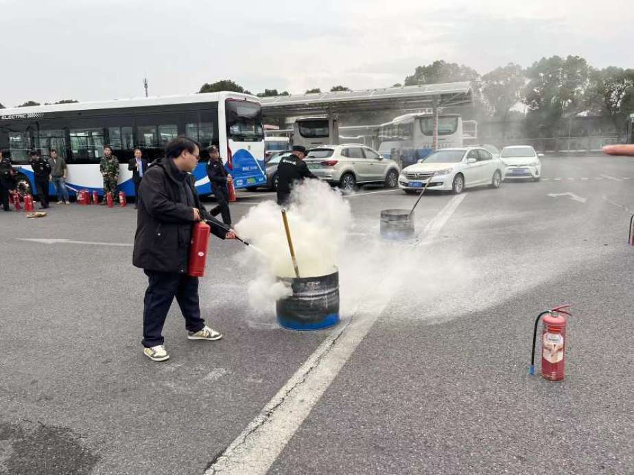 金高公交还联合消防大队在金高路停保场举办消防演练实操实训。本次演练聚焦实战技能,重点开展了灭火器使用教学与初起火灾扑救实操,通过理论培训、现场演示与动手操作相结合的方式,有效提升了员工的消防技能水平和应急处置能力。