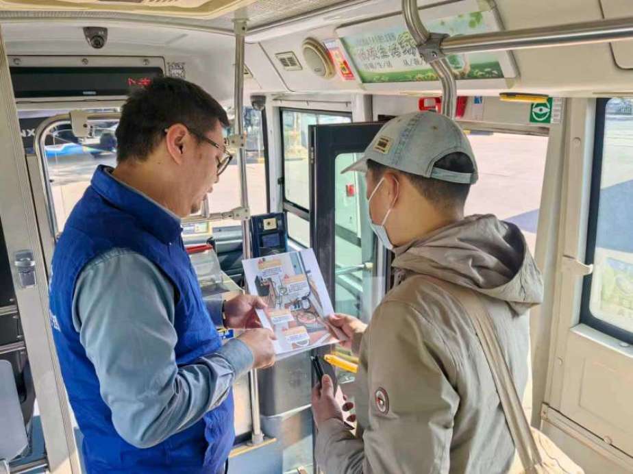 金高公交通过在公交枢纽站、办公区等区域以悬挂宣传横幅、张贴海报等形式,提醒市民乘客及一线职工自觉防范消防安全风险。公交青年职工化身“安全宣传员”,在客流密集的公交枢纽和站点,向候车乘客和过往市民发放消防宣传资料,并结合典型案例讲解加强家庭用水用电安全、切勿将电动车入户充电、定期检查电路问题、及时关闭电器电源等的重要性,增强大家的消防安全意识。