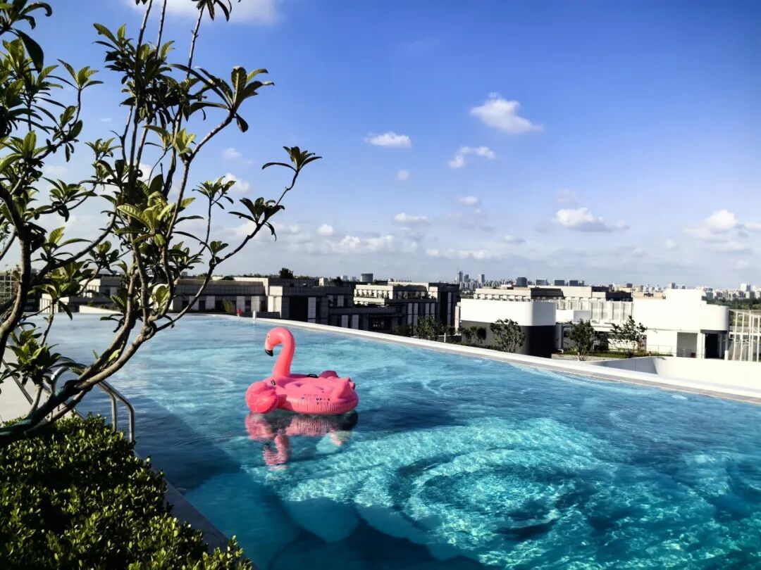 下班之后,园区切换为活力运动社交场。员工可约上“运动搭子”,在室外篮球场挥洒汗水,或走进免费健身房尽情释放能量。最令人向往的,莫过于屋顶灯光球场与无边泳池——在都市天际线的环抱中,沐浴晚风、尽情运动,让工作的压力随汗水一同消散。