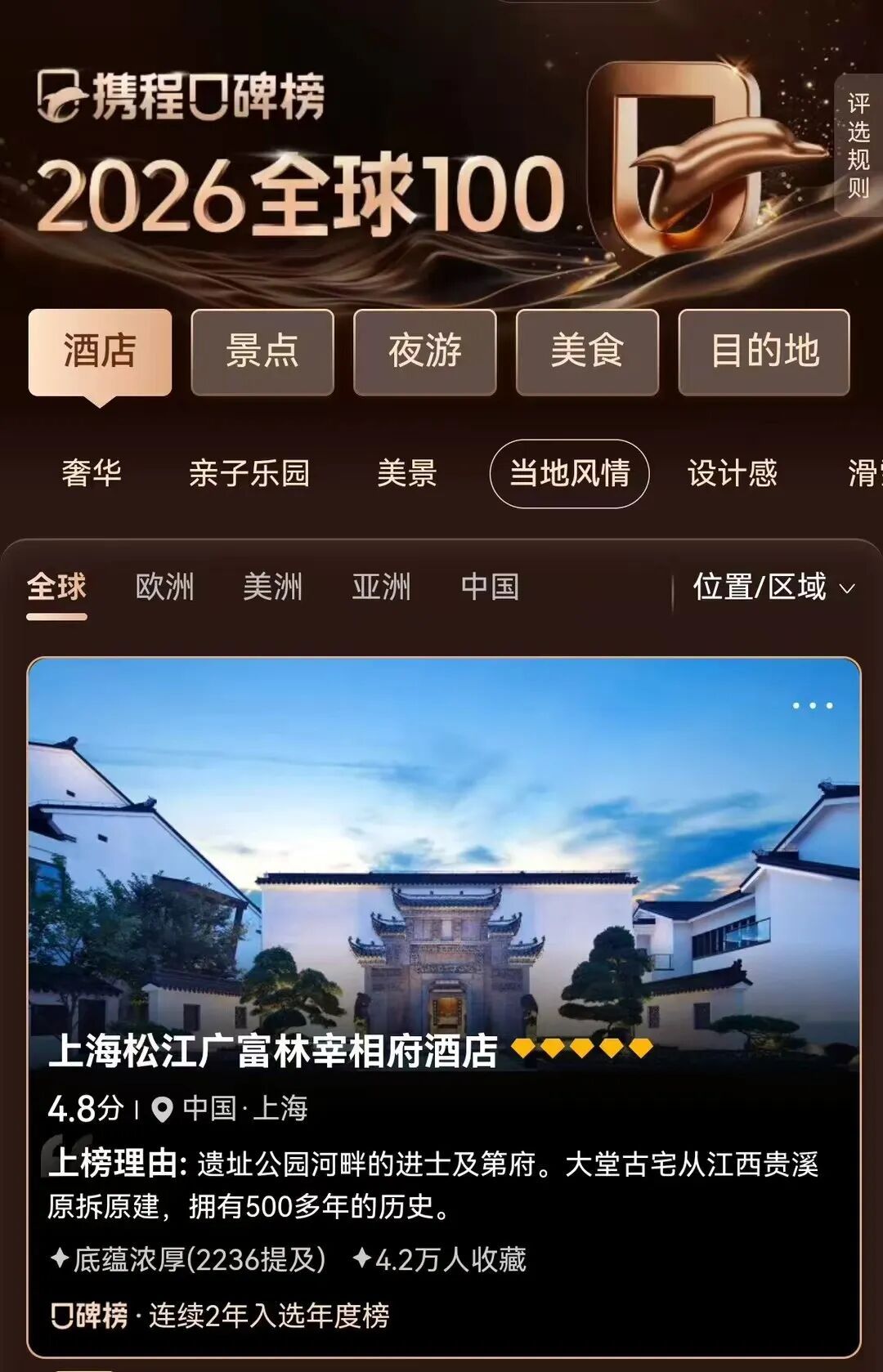 据悉,携程口碑榜基于平台亿级用户数据及多层人群口碑验证,以公正性与专业性为旅行者提供参考。松江广富林宰相府酒店的连续上榜,印证了其在传承地方文脉与引领国潮消费趋势上的成功实践,也为文旅融合背景下酒店业的创新提供了范本。