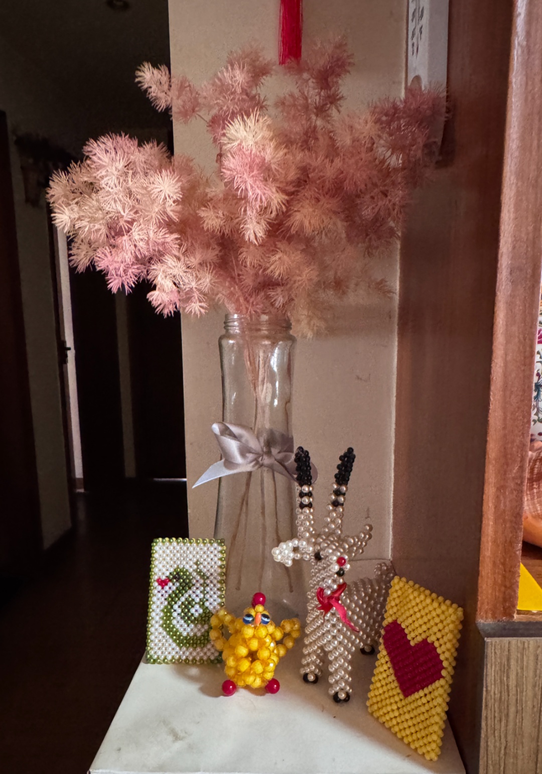 董志萍家里摆放的串珠作品