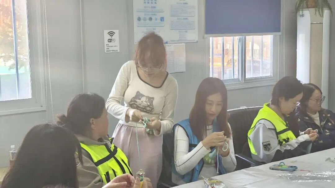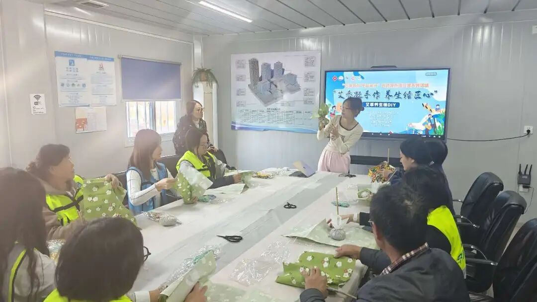 在活动现场,“艾香凝手作 养生锤匠心”环节吸引了众多建设者们参与。在专业老师的指导下,建设者们学习制作养生艾草锤,从包紧中药艾草包制作锤头,到插入小木棍作为锤柄,再到用绳子缠紧成型,每一步都凝聚着认真与专注。当一个个颜色各异的养生艾草锤制作完成,建设者们脸上洋溢着自豪与喜悦,纷纷举起自己的作品,在老师带领下学习使用方法,并将这份“养生法宝”带回家中。