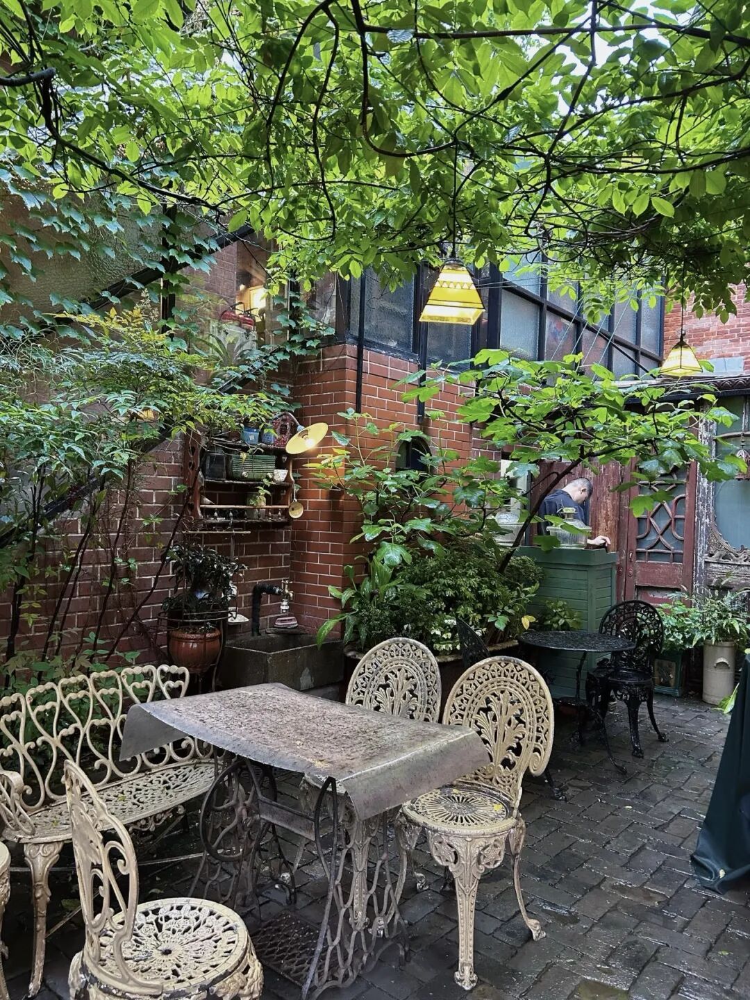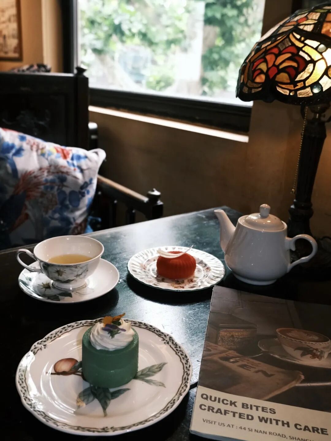 一家坐落在思南路的“隐世花园”,走进这里就像误入了某部老电影的场景,红砖小楼、复古窗棂、满眼的绿植……