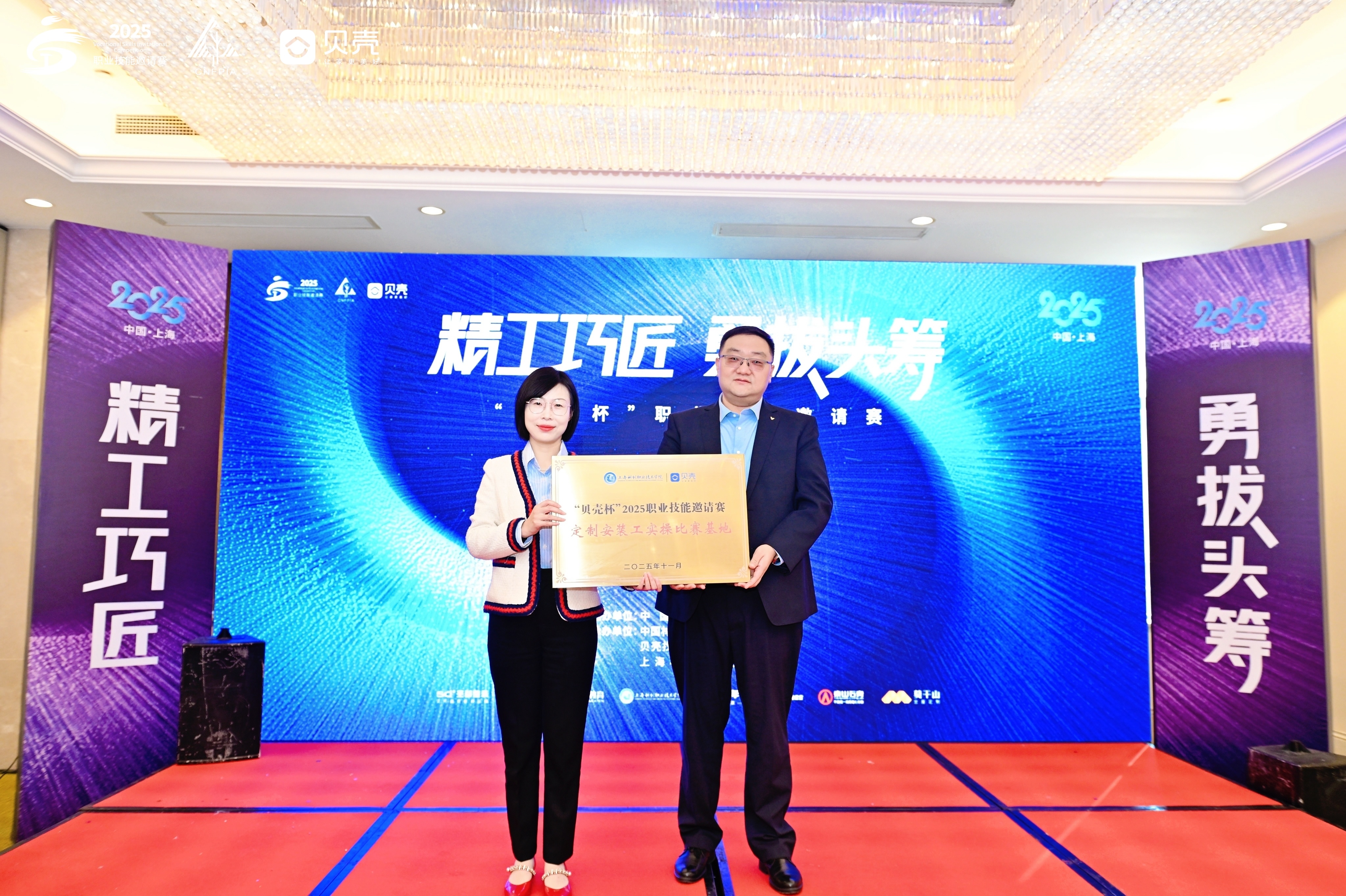 作为此次比赛的承办方,上海科创职业技术学院在产教融合方面持续发力。近年来先后培养出3名世界技能大赛冠军,并斩获阿尔伯特·维达大奖。该校与贝壳的合作自去年开启以来逐渐深入。开赛当天,贝壳特别授予上海科创职业技术学院“贝壳杯2025职业技能邀请赛定制安装工实操比赛基地”称号。今后,双方将继续共同探索产业工人职业化发展路径。