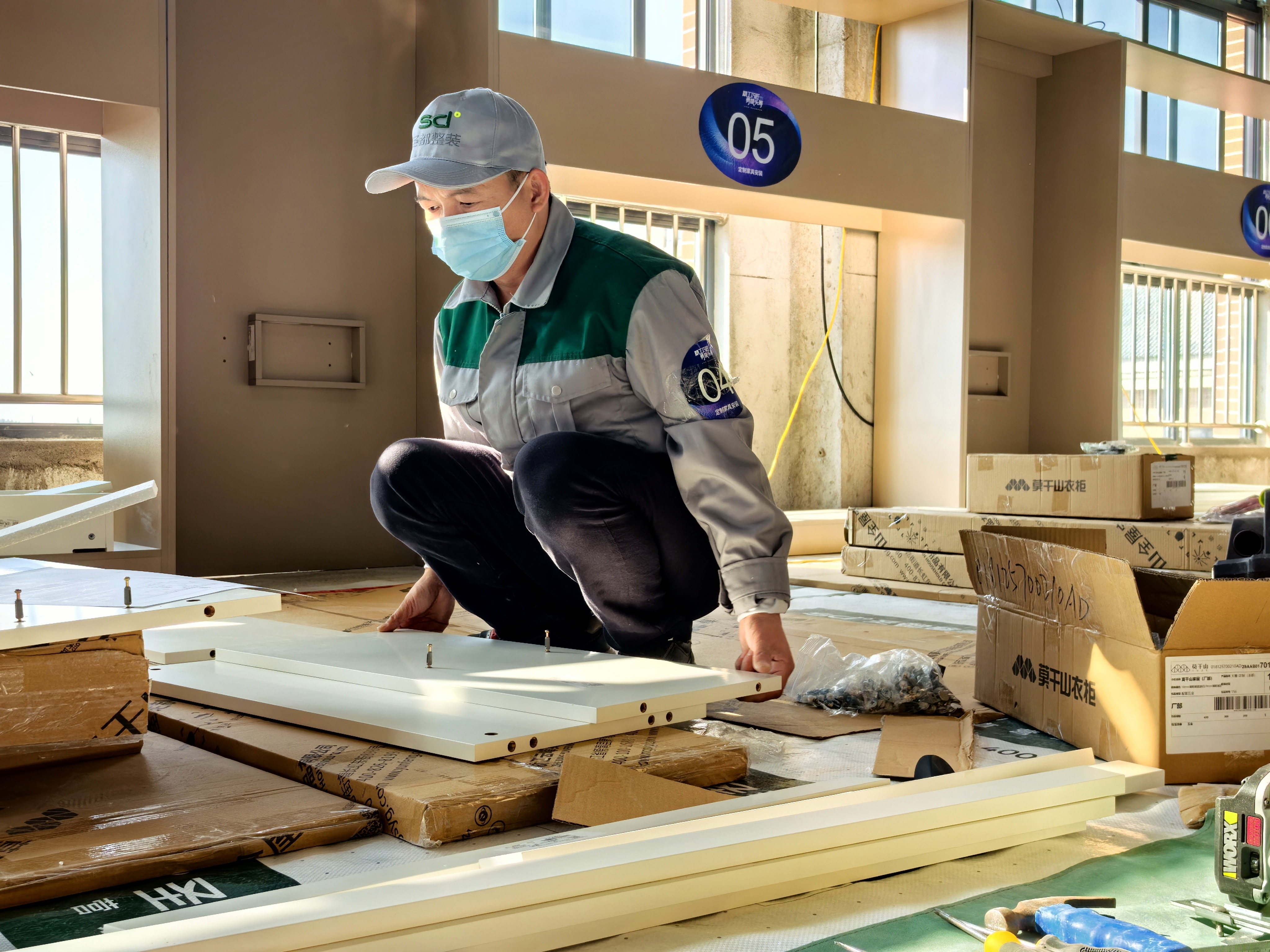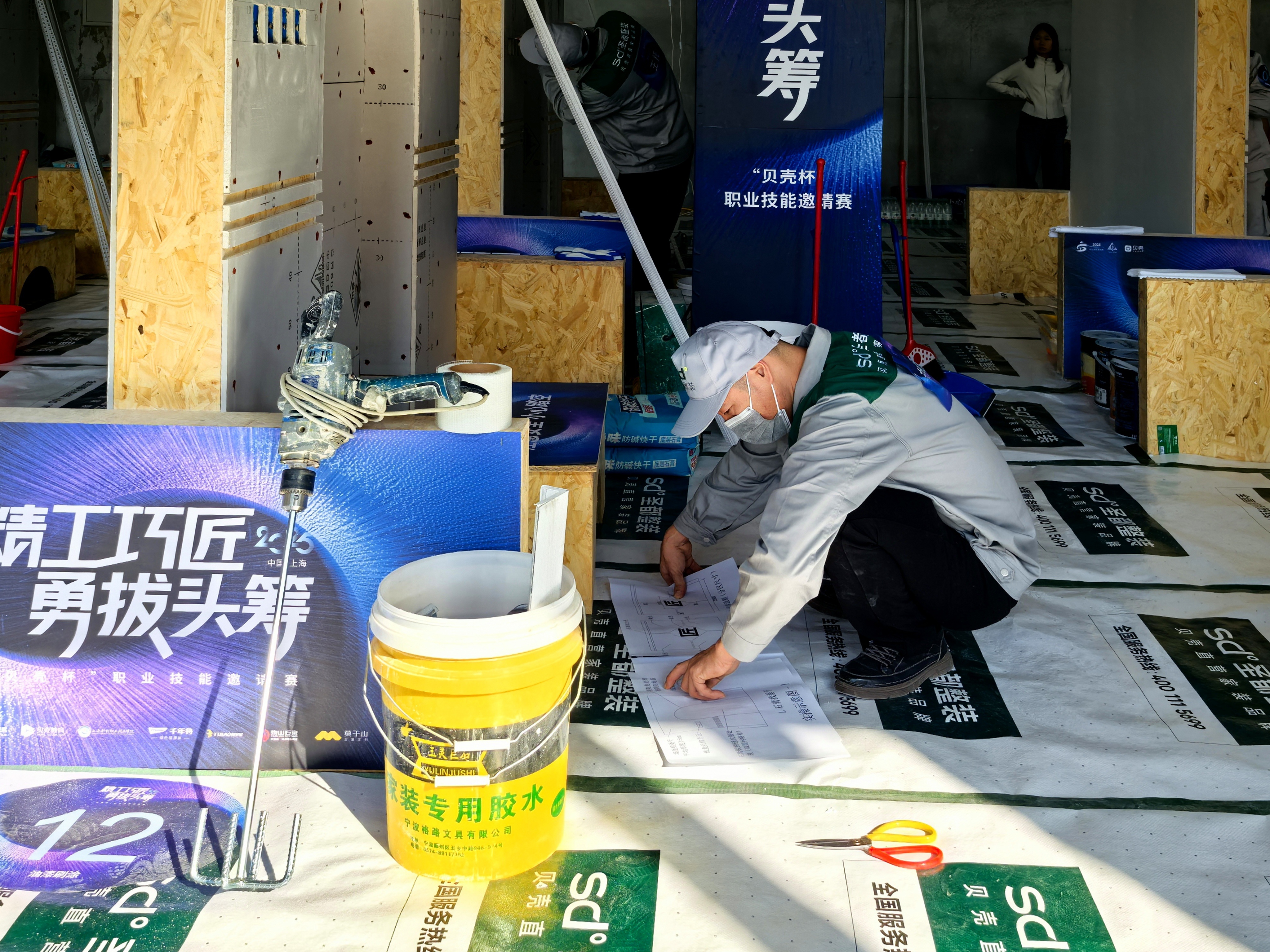 比赛分笔试和实操两部分内容,实操赛场设在上海科创职业技术学院,分区设置了定制安装、瓷砖贴面和油漆涂刷3个赛项,按真实家装场景设计成选手每人一个“工地”。下午1时30分,比赛正式拉开帷幕,选手们从图纸解读到实际操作,环环相扣,在赛场上各展身手。“能和来自全国各地的同行同台切磋,对自身技艺提升很有帮助。”来自圣都整装四川大区的安装工尹雷去年在地区大赛中拔得头筹,他认为,从事家装行业不仅需要在反复操练中积累经验,也要不断学习掌握新技术,顺应行业迭代升级的潮流,而比赛就是选手能在两方面都得到提升的平台。