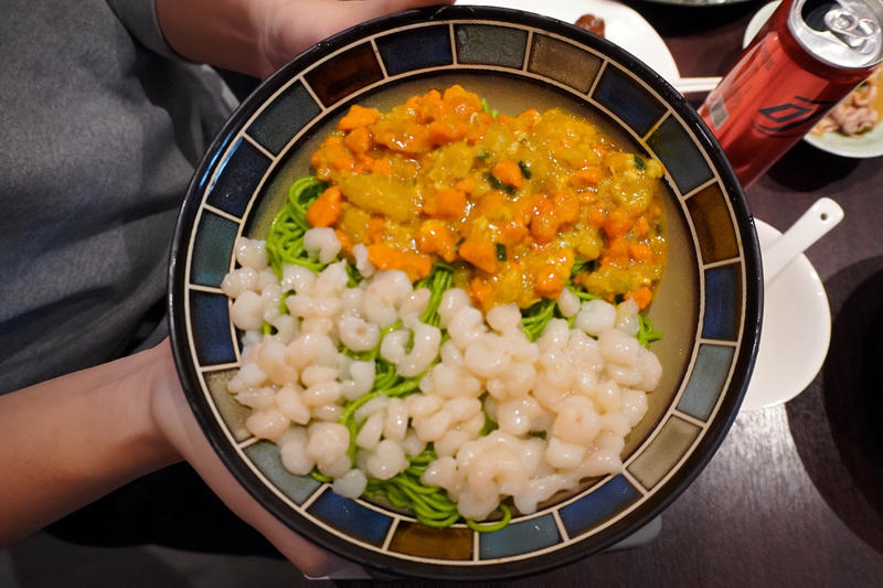 云和面馆在菜品制作上注重传统工艺与现代创新的结合,其特色面食在选材和制作工艺上颇为讲究,体现了对饮食文化的匠心传承。其中,三虾面集虾籽、虾脑、虾黄于一身,制作过程包含多道工序,展现了传统烹饪技艺的精细;秃黄油面则以公蟹的膏、母蟹的黄等食材为特色,配以菠菜面,在传承中有所创新。