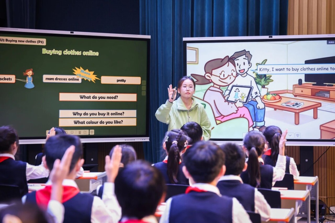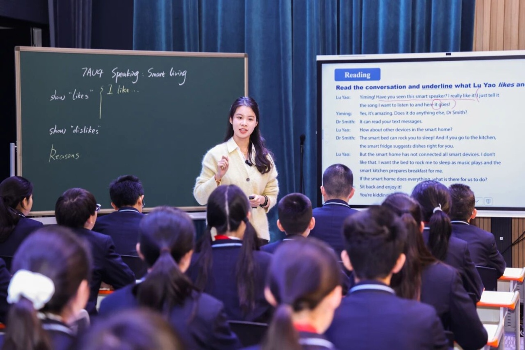 开幕式上,上海市宋校嘉定实验学校教师茅佳豪与上海大学附属嘉定实验学校教师郁伊好,分别呈现了五年级和七年级英语课堂展示。