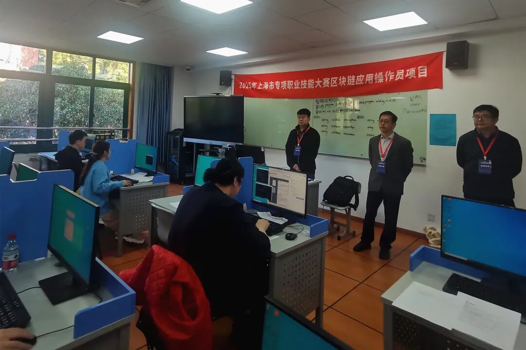 11月16日,由上海市人力资源和社会保障局主办,上海市职业技能鉴定中心、静安区人力资源和社会保障局共同承办的2025年上海市专项职业技能大赛区块链应用操作员项目在上海行健职业学院举行,以进一步精准对接产业需求,加快区块链产业高技能人才培养和集聚。