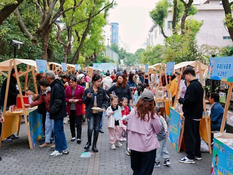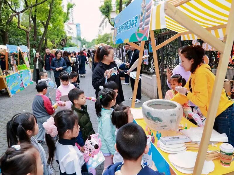 “丽·萌”市集作为社区活力的“引爆点”,将小巷变为全龄共享的欢乐场。市集不仅汇聚了运动趣味、非遗手作、便民服务,更成为“家校社”协同治理的生动展台:海华小学的“跳蚤市场”让小摊主们体验分享经济,卢湾中学的机器人互动则展示了社区的智慧底蕴,商户则结合自身优势为小巷市集注入“烟火气”。