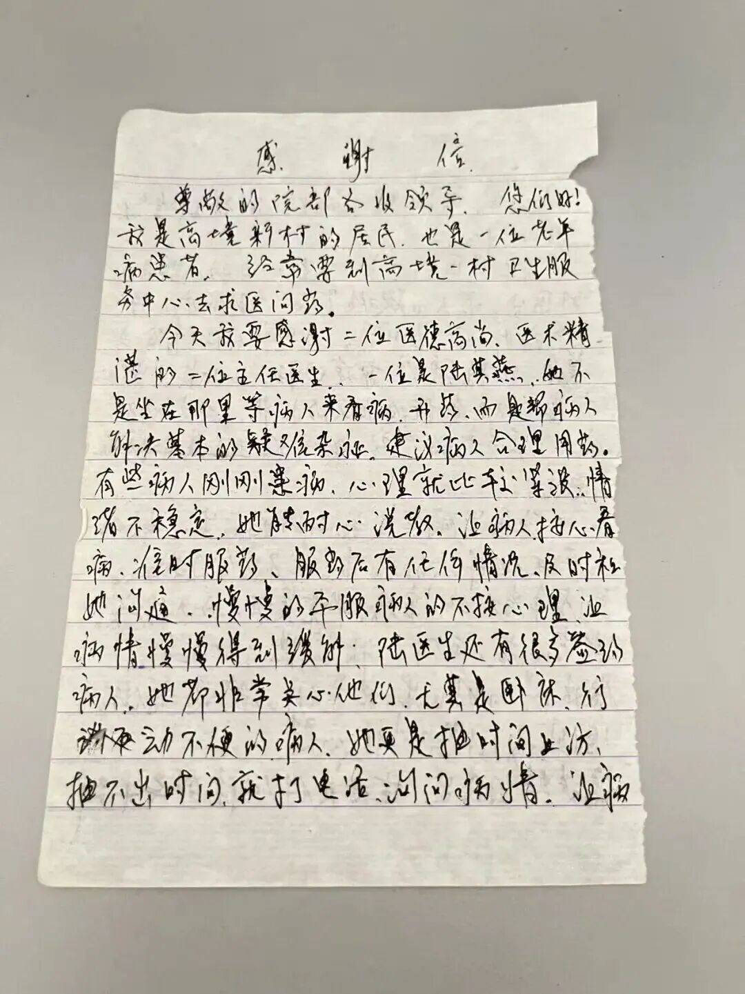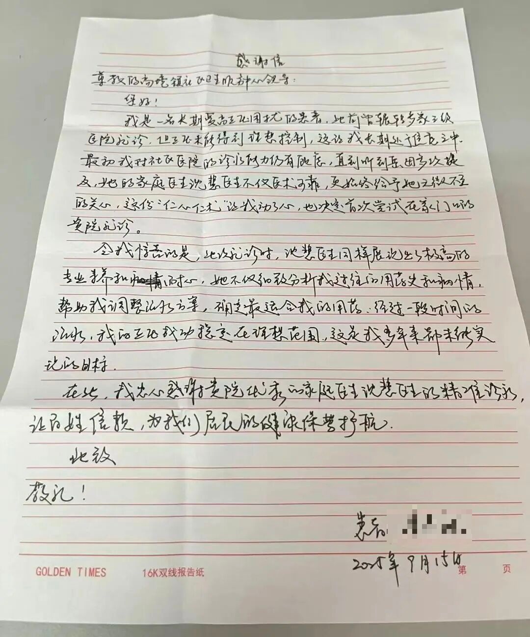 一纸信笺,万千情意。在医患关系日益紧密的今天,高境镇社区卫生服务中心的医务人员用行动证明,最好的医术是“把患者当家人”,最好的服务是“把健康放心上”。