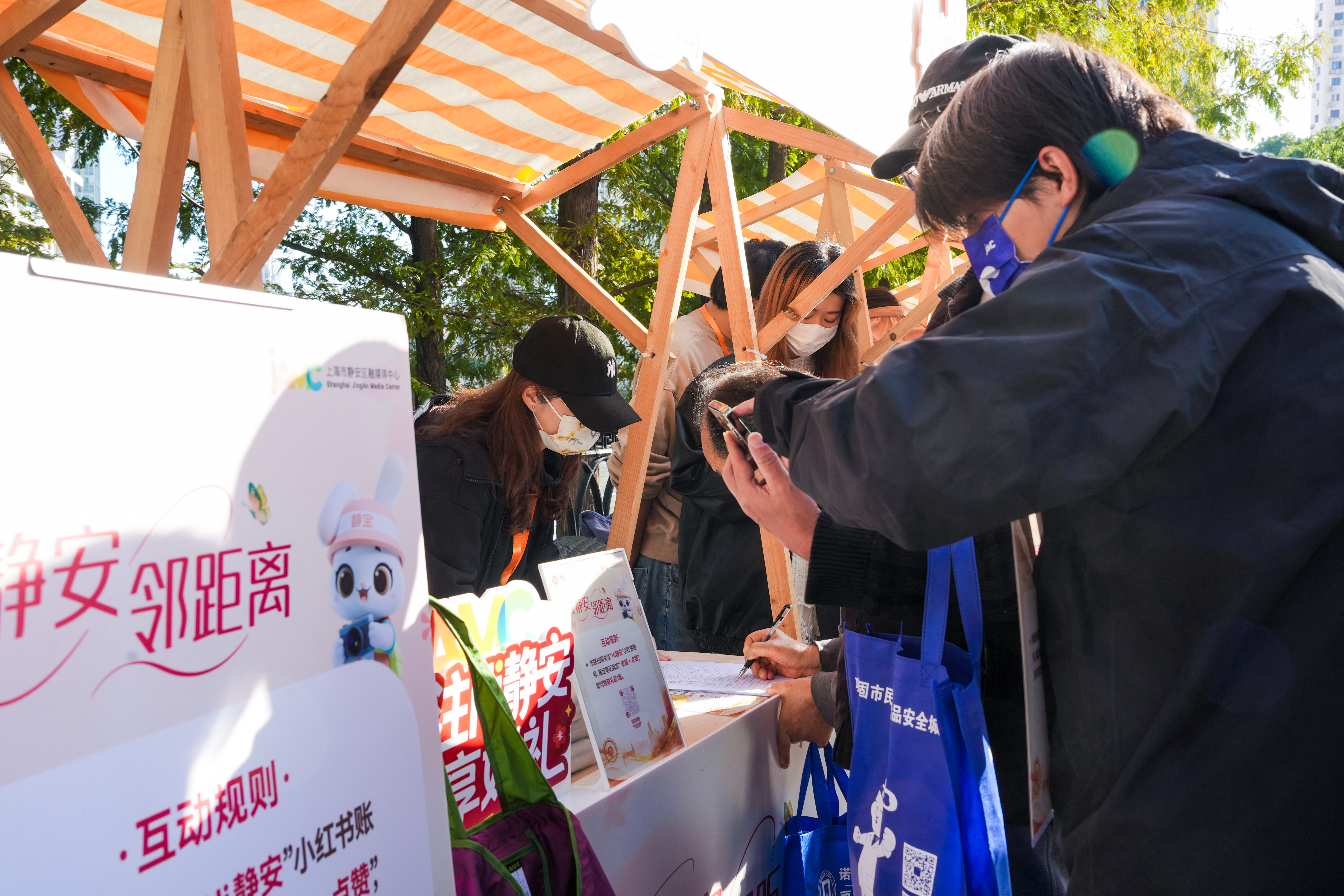 活动现场,区融媒体中心的小编们为市民热情推介“静安生活搭子”@Hi静安小红书,并为现场完成互动任务的粉丝送上秋冬暖心福利。