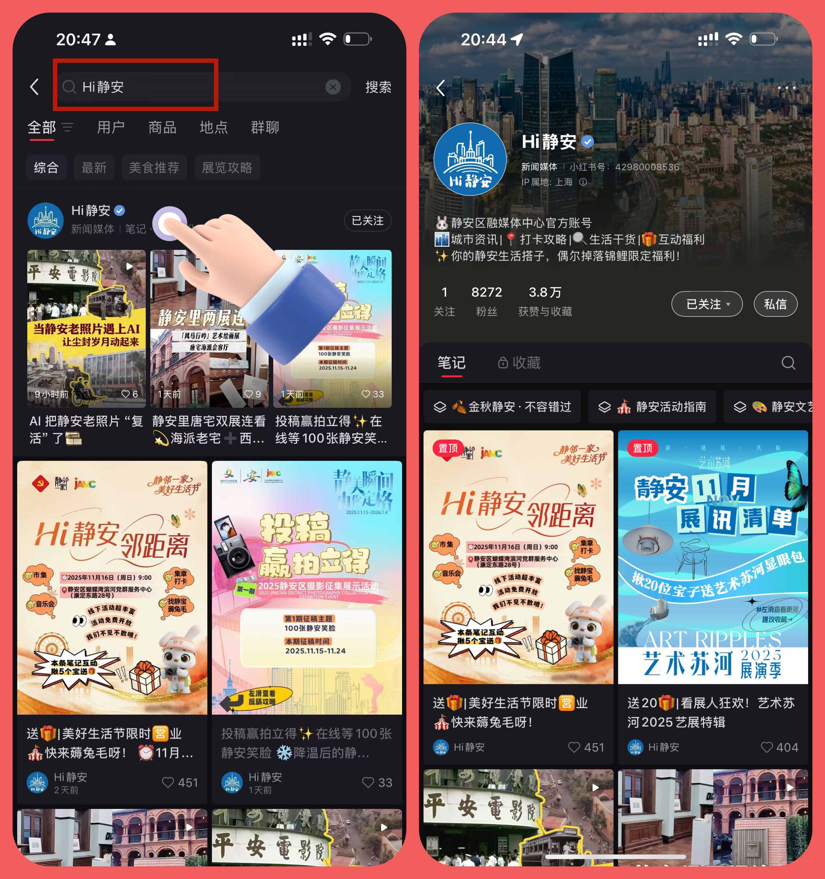 区融媒体中心相关负责人表示,@Hi静安 是静安区融媒体中心官方小红书账号,于2025年3月全新上线。“Hi静安”主题互动摊位不仅是本次“静邻一家·美好生活节”的“福利站”,更是“静安美好生活的传播站”,后续也将持续以“静安生活搭子”身份,输出实用的静安本地内容,也会不定期开展各类宠粉活动,让@Hi静安 成为市民了解静安、玩转静安的“贴心助手”。