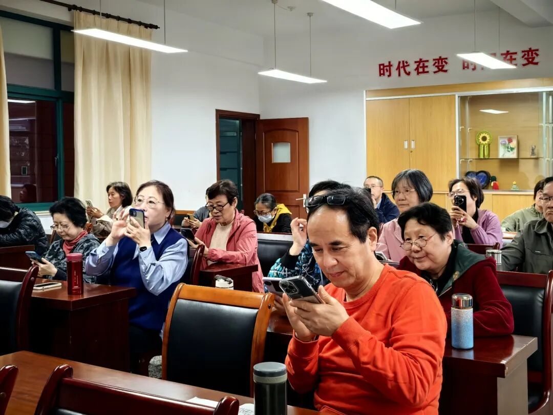 一开始,吴霞在课堂上几乎是唱独角戏,老人们虽然听得很认真,但很少互动,实操环节,更是不敢独立操作,需要她挨个儿指导。一转眼两个月过去了,学习的人还是那么些人,但学习的态度却发生了巨大转变。用吴霞的话来说就是:“这帮老伙伴已经玩到停不下来了!课堂上积极发问不说,下课了回到家也在学习群里交流……”