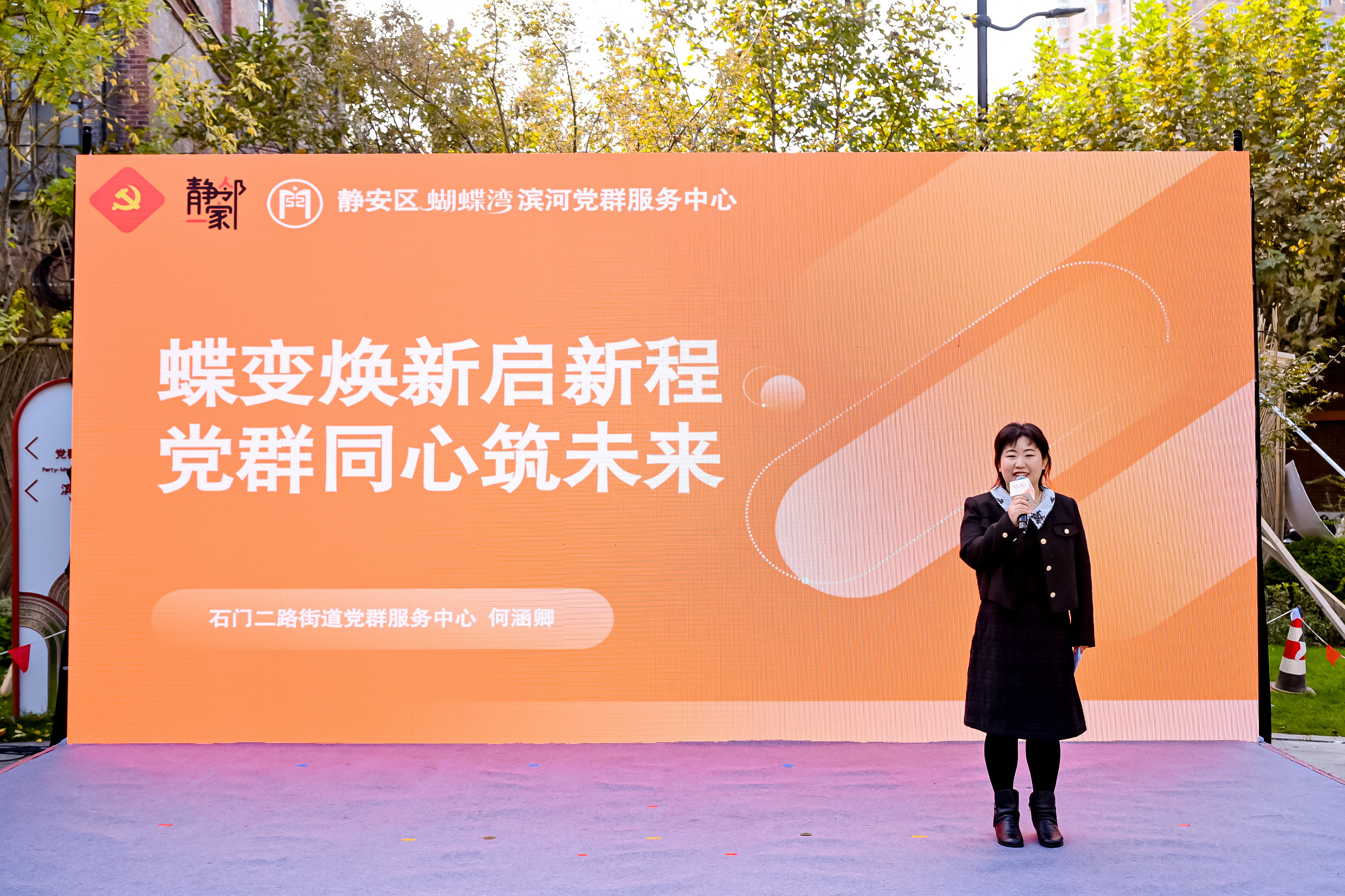 石门二路街道党群服务中心副主任何涵卿则介绍了党群服务中心如何把“群众愿景”转化为“服务场景”,把“治理难点”变成“幸福起点”,让党群阵地真正成为党员群众心之所向的精神家园。