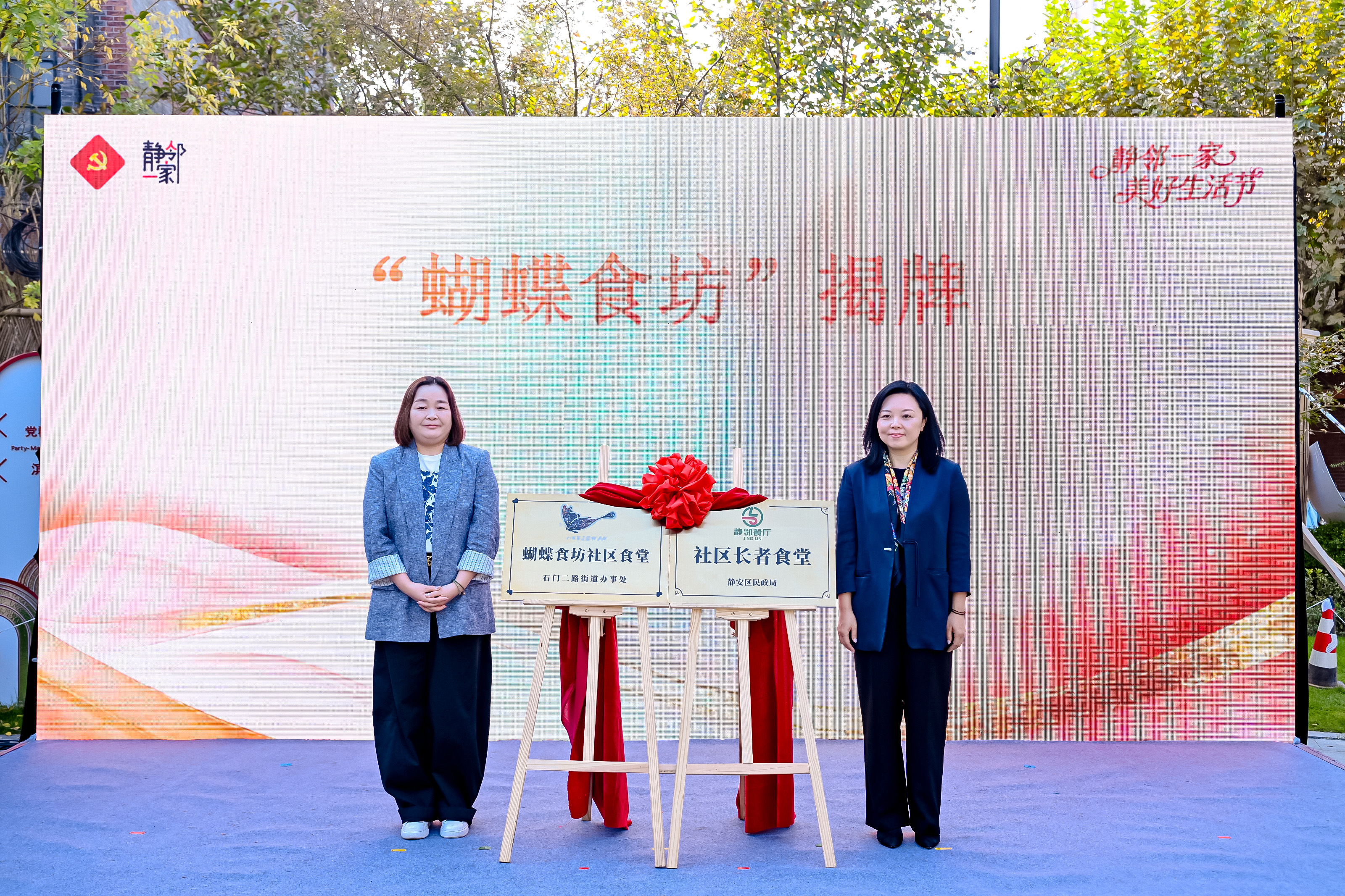 在静安区蝴蝶湾滨河党群服务中心建设过程中,静安区积极回应居民需求,在阵地空间内打造“蝴蝶食坊”社区食堂,并在活动中正式揭牌。
