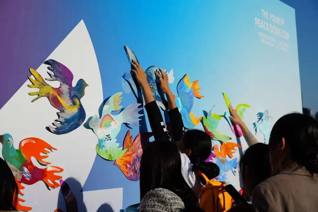 在展厅中,这样的巧思随处可见。有的孩子将和平鸽与可爱的兔子画在一起,共同守护一个“美好的家园”;有的孩子则用敦煌的神兽形象,构筑起连接不同文明的“时空小桥”。这些充满想象力的作品,不仅是艺术才华的展现,更是孩子们从“一米高度”的视角,对世界和平与人类命运共同体这一宏大主题,给出的最纯真、最响亮的回答。