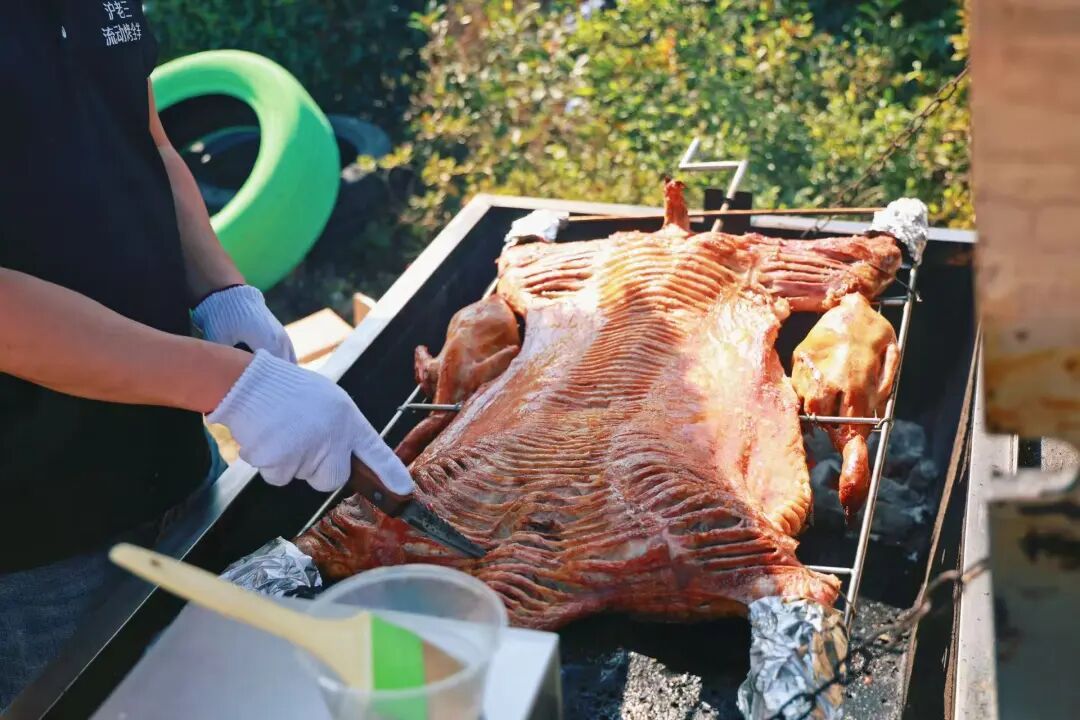 美食体验是本次活动的一大亮点。专业师傅现场烤制的全羊,外皮金黄酥脆、肉质鲜嫩多汁,出炉时滋滋作响,吸引不少市民排队品尝。