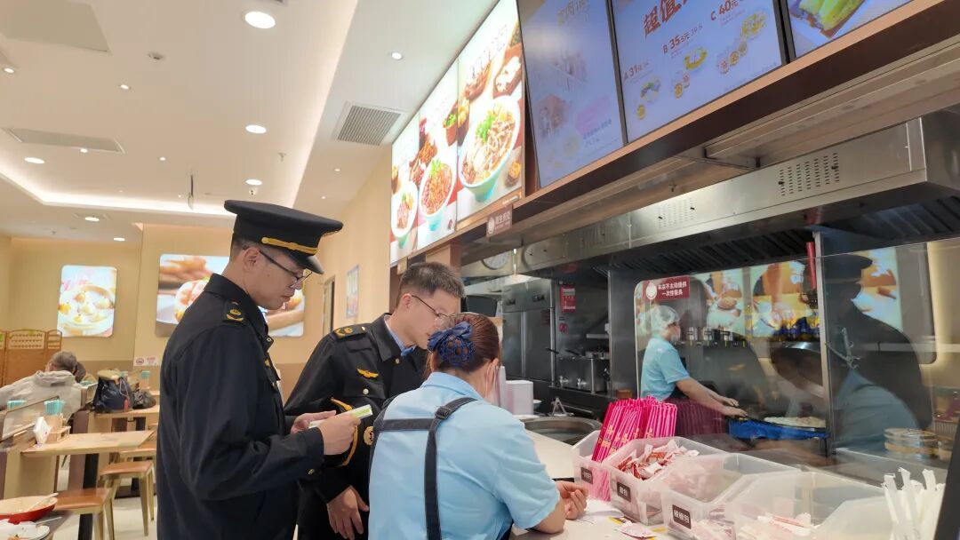 在一家门店内,执法人员将定制封签交到工作人员手中,并详细讲解其重要性。据介绍,“食安封签”已在全市广泛使用,通常采用一次性特殊材料制作,由商家在餐食打包时封贴,一旦拆启就会留下痕迹,能有效保障配送过程中的食品安全。