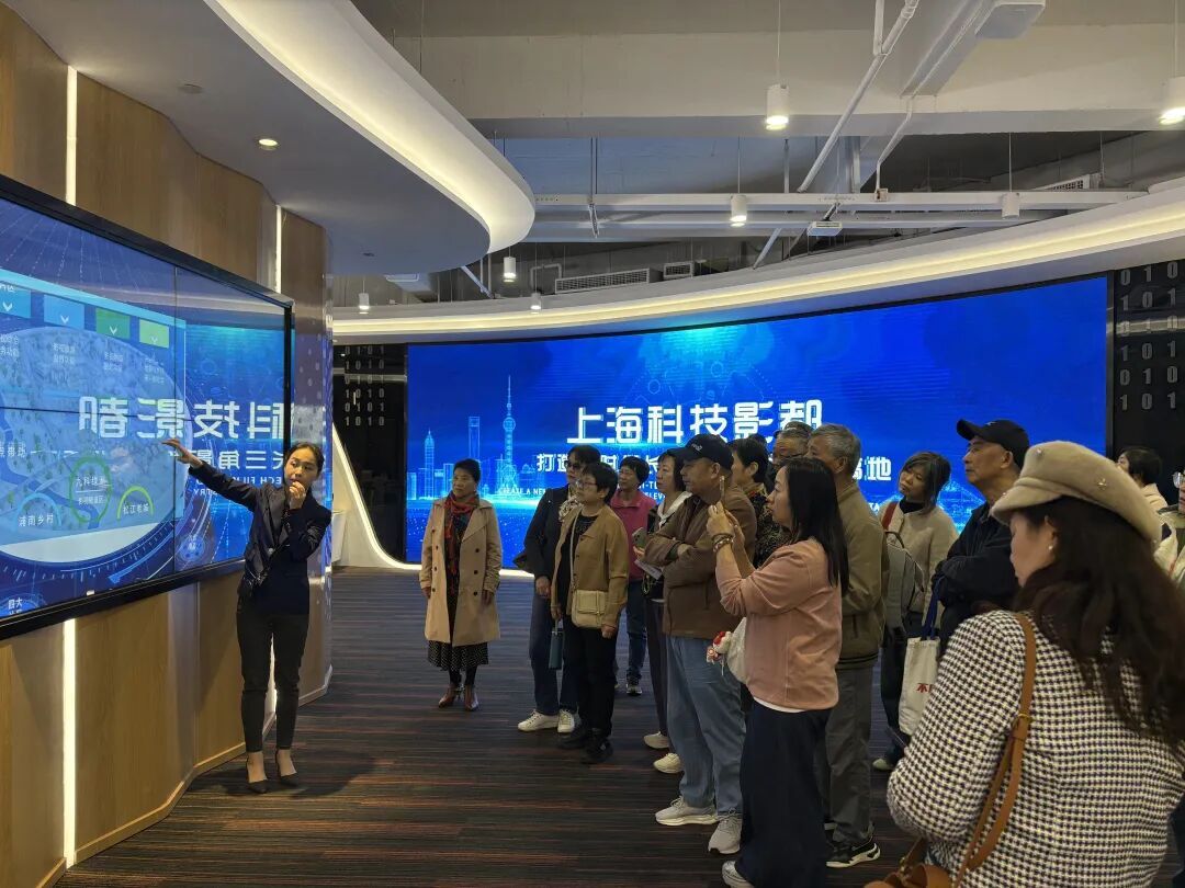 活动首站来到上海科技影都科技规划展示厅,在讲解员的引领下,从中国早期电影的萌芽,到上海“东方好莱坞”的辉煌岁月,再到如今科技影都的宏伟规划,一幅波澜壮阔的影视发展画卷徐徐展开。详实的史料、珍贵的影像资料与沉浸式互动体验,让学员们系统了解了上海电影从无声到有声、从黑白到彩色、从传统到数字的演进历程,触摸到影视历史的温度与科技发展的脉动。