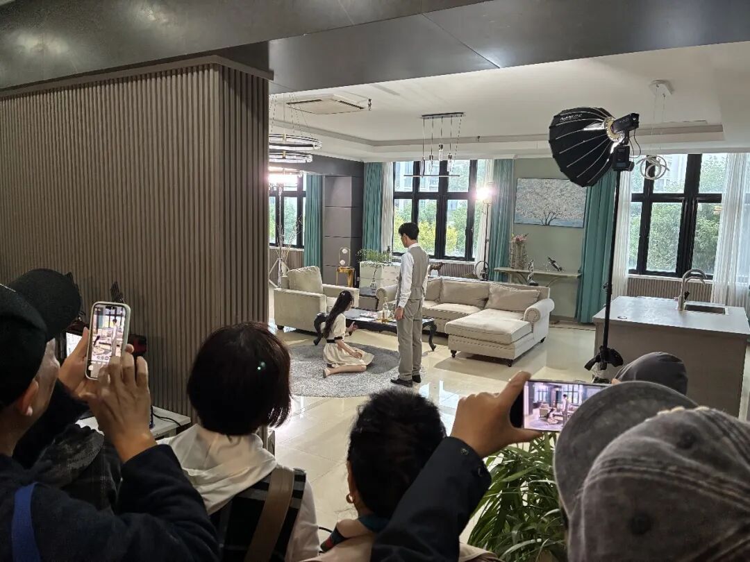 在感受完影视历史的厚重与科技的魅力后,大家来到仓城影视基地,开启了充满新鲜感的“短剧探秘”。恰逢基地内有短剧紧张拍摄,同学们得以近距离观摩场景布置、灯光调试、演员走位、导演调度等完整流程,每一个专业环节都让大家驻足记录、心生好奇。参观结束后,资深影视从业者带来的专业分享更是干货满满,不仅解析了短剧的创作特点、叙事技巧与行业趋势,还耐心解答了剧本构思、成本控制等疑问,并邀请老年学员参与短剧演出,让不同年龄段的参与者都收获颇丰。