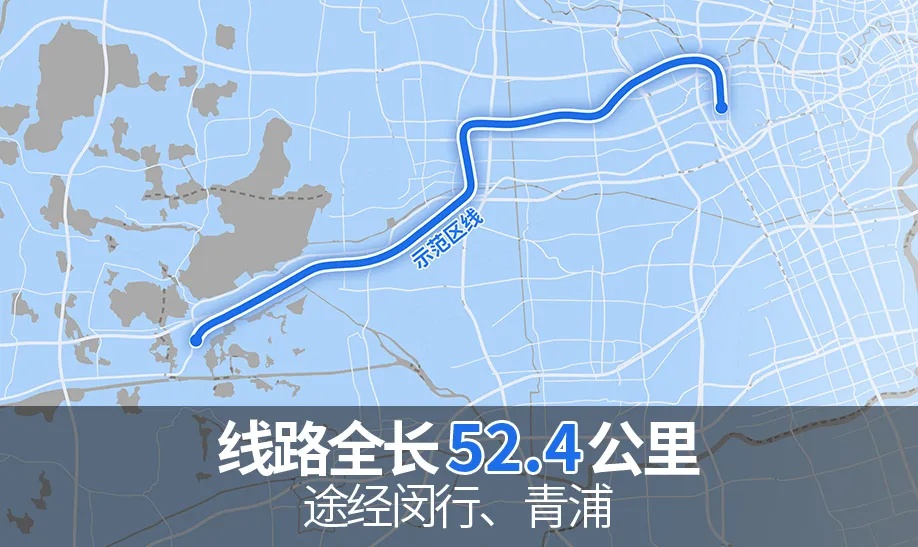 上海示范区线全长52.4公里,途经闵行、青浦2个行政区,全线共设10座车站,列车最高运行时速160公里。项目建成后,将构建起连接上海主城区、青浦新城与嘉善、吴江等地的快速交通骨架。作为沪苏嘉城际铁路上海段,上海示范区线不仅是长三角生态绿色一体化发展示范区的门户线路,也是上海市域线网的重要组成部分。
