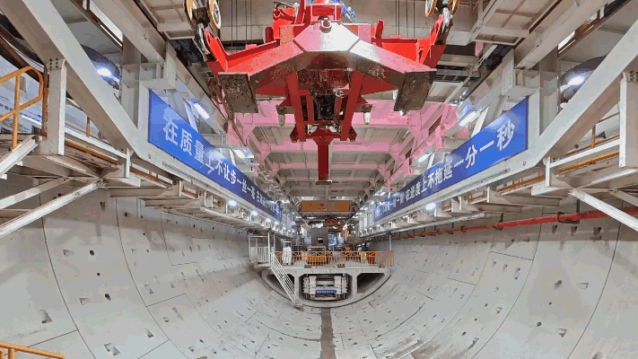 隧道内部构件全预制化智能建造,不仅提高了作业效率,还避免了现浇混凝土产生的扬尘污染,减少了内部材料运输过程中的碳排放,真正实现了“拼搭积木”式的绿色建造。目前,项目已全面进入中隔墙拼装等内部预制结构施工阶段。