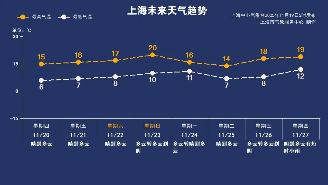 11月20日(周四):晴到多云,6~15℃