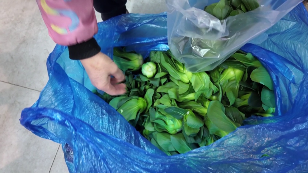 摊主也忙得不亦乐乎,他介绍道,目前本地青菜价格十分亲民,每斤在4元左右。今天采购的青菜分量直接比昨天翻了一倍,本以为能多卖一会儿,没想到还是卖得飞快,不到中午就所剩无几了,明后天还得再多进点货。摊主笑着补充:“天气冷了,现在乡下气温都到0度左右了,稍微有点霜,这菜吃起来特别糯。本地菜大量上市了,价钱也不贵,就四五块一斤。”