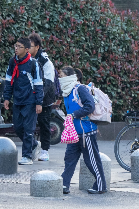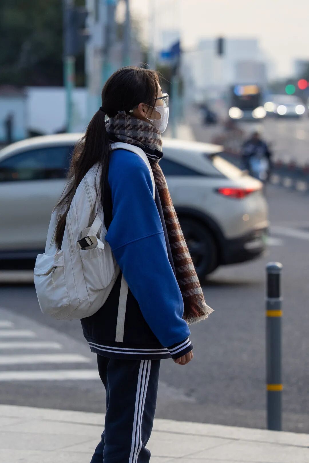 寒意挡不住求学路,学子们裹紧衣服奔赴校园