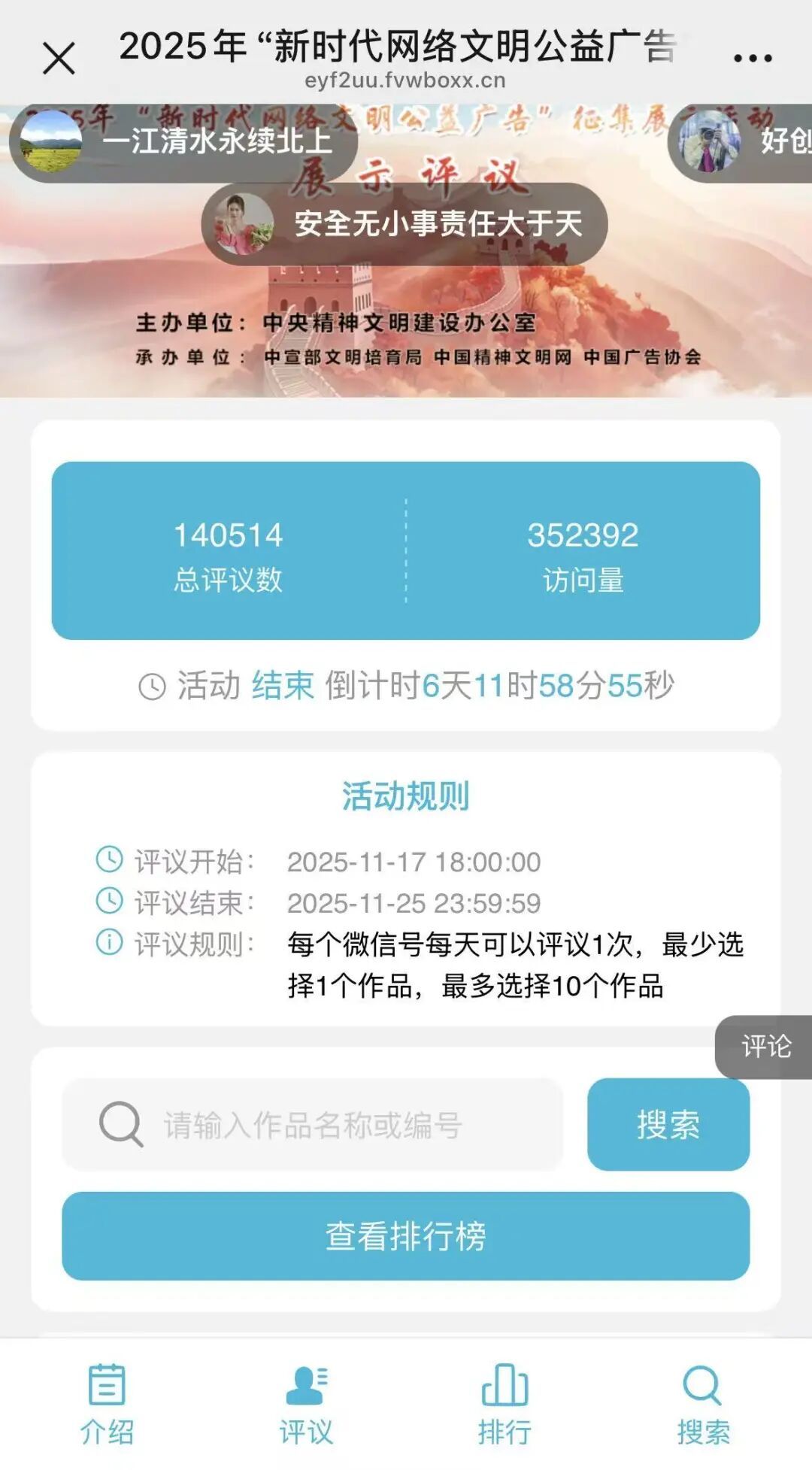 2.每个微信号每天可以评议1次,最少选择1个作品,最多选择10个作品。