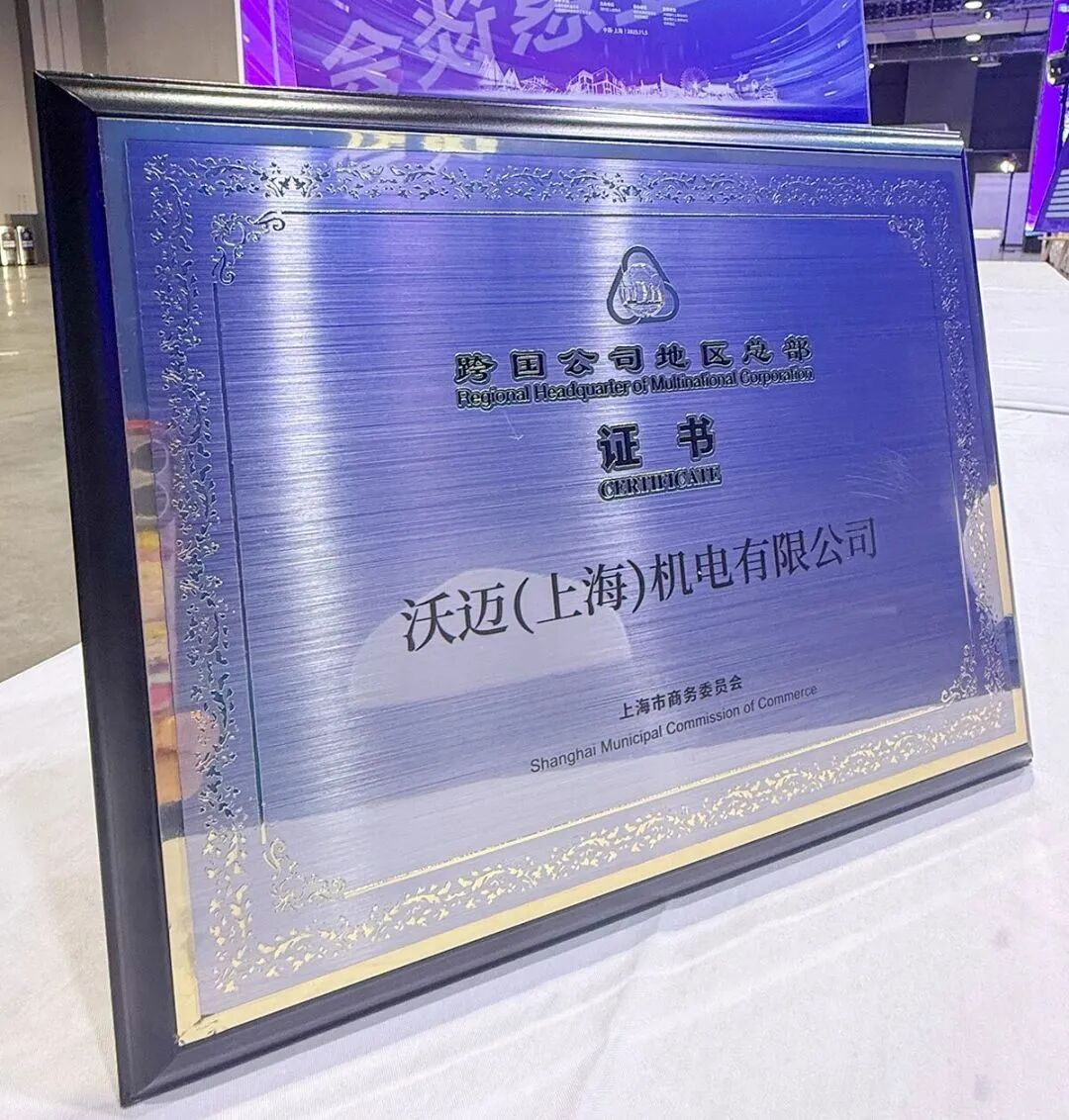 沃迈(上海)机电有限公司认定为跨国公司地区总部(亚洲区除印度)