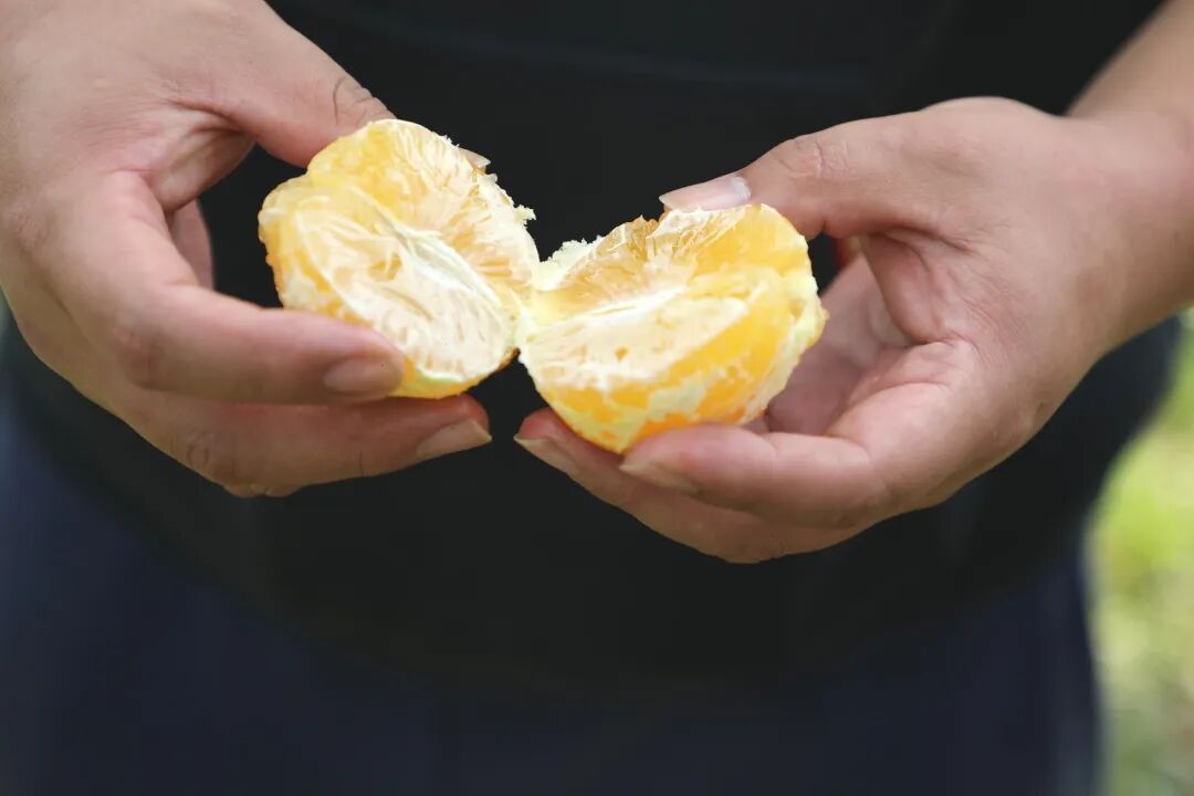 红美人柑橘是橘橙类杂交品种,不仅继承了橘子的香气和易剥皮的特点,还拥有橙子的甜度和多汁。其果皮最薄仅1mm,果肉柔软无渣,酸甜浓郁。甜度达到14度以上,远超普通柑橘。轻轻一捏,果肉柔嫩,汁水充沛。