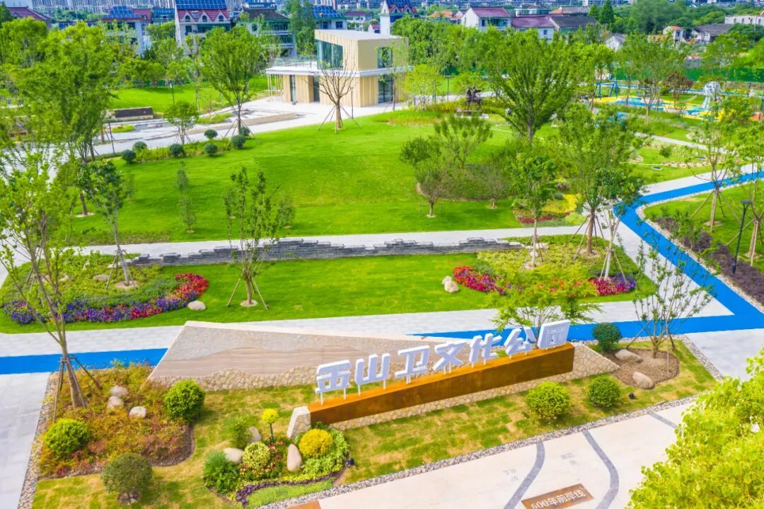 金山卫文化公园的打造,也是卫城滨水社区建设的重要一环。去年建成开放的金山卫文化公园(西区),如今已成为周边市民散步遛娃的好去处。这座占地约1.8公顷的公园集生态休闲、文化展示与活力健身等功能于一体,不仅通过四季苗木实现“四季有景”,更以古岗身景墙、卫城印象主题廊架等元素,生动呈现金山“三古一卫”的历史文脉。