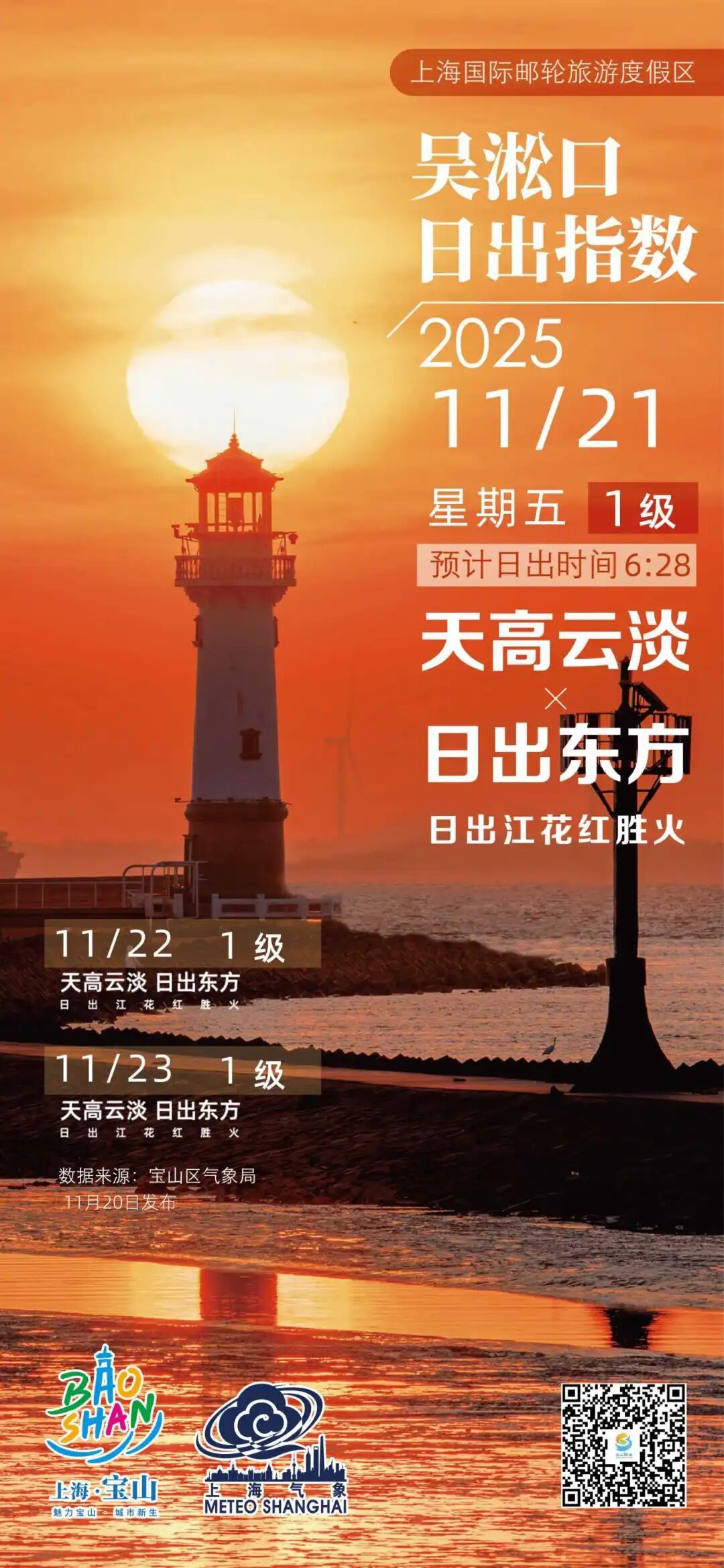 【吴淞口日出指数】11月21日1级 天高云淡×日出东方