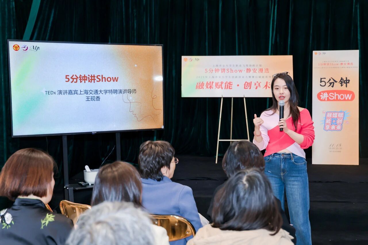 11月18日,“融媒赋能・创享未来——5分钟讲Show·静安漫选”活动在静安漫选空间举行。本次活动作为2025年上海市女大学生创新创业大赛的赛后赋能环节,聚焦融媒体时代下的青年创业实践,搭建起市区联动、校企对接、资源共享的桥梁,助力女性创业项目从创意走向市场。