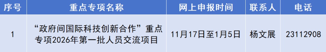 根据《科技部国际合作司关于发布国家重点研发计划“政府间国际科技创新合作”重点专项2026年度第一批人员交流计划项目申报指南的通知》有关要求,为做好本次项目的申报及推荐工作,特通知如下:
