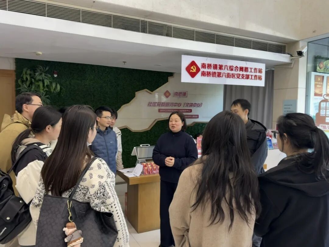 在南桥镇党群服务中心,新录用公务员积极参与区域化党建活动,通过引导与协调,切身感受网格作为基层治理“神经末梢”的精准高效,系统学习资源整合与服务联动的运行机制。