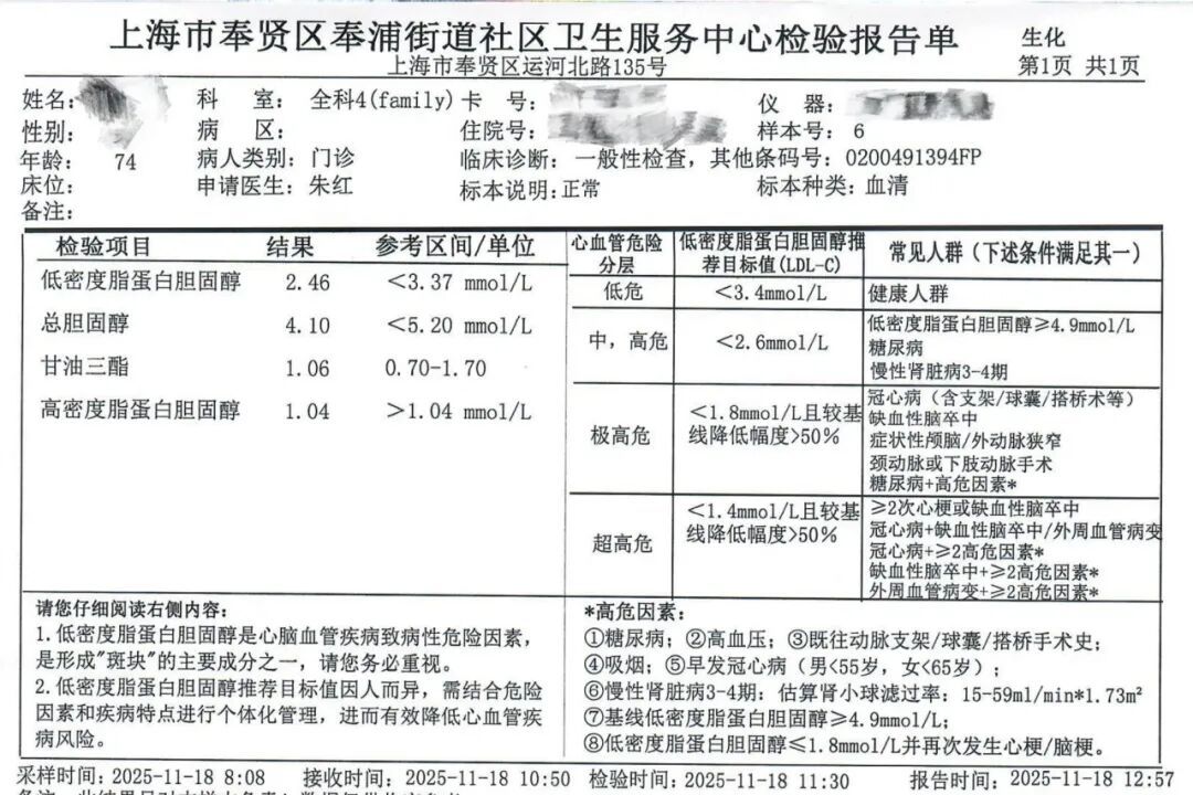 在影响居民健康的慢性病中,血脂异常已成为不可忽视的重要危险因素。奉浦街道社区卫生服务中心在全区率先推出新版血脂报告单,标志着社区血脂管理从基础检测迈向精准评估的新阶段。
