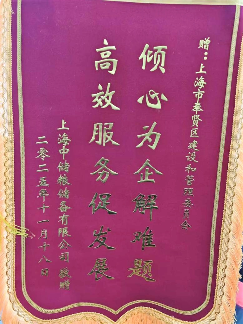 11月18日,上海中储粮储备有限公司代表专程来到区建设管理委位于区政务服务中心的窗口,将一面印着“倾心为企解难题,高效服务促发展”的锦旗送到工作人员手中,表达对区建设管理委审批部门工作的高度认可。
